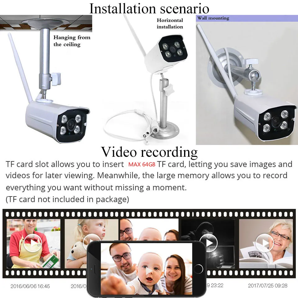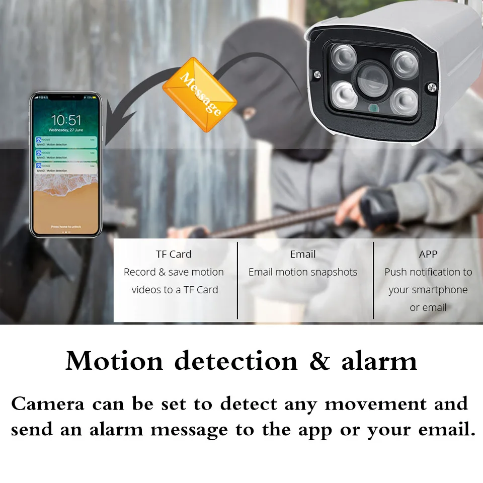 IP Camera 720P Wifi CCTV Camera Outdoor Bullet Camera Audio Record with SD Card Slot Waterproof Night vision Motion Detection
