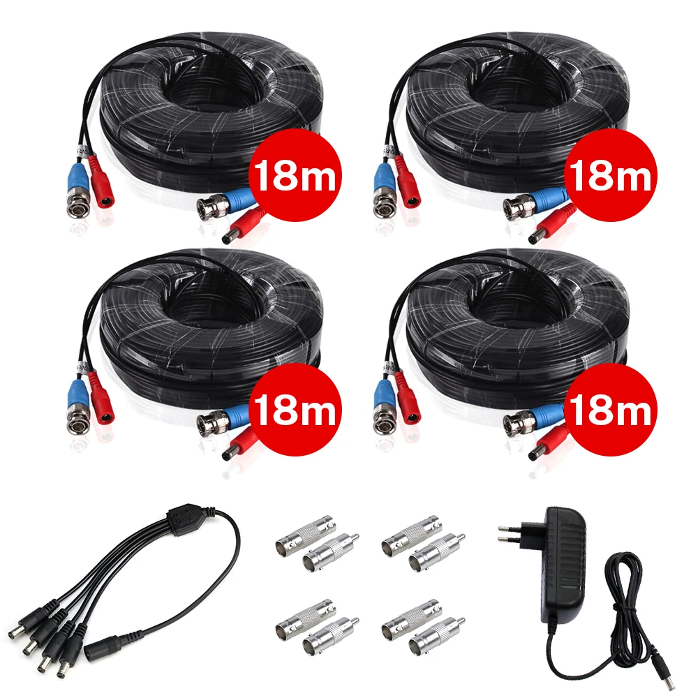 4PCS 18m60ft CCTV Cable BNC & DC Plug Video Power Cable with DC 12V for 4 wired AHD camera Video Su
