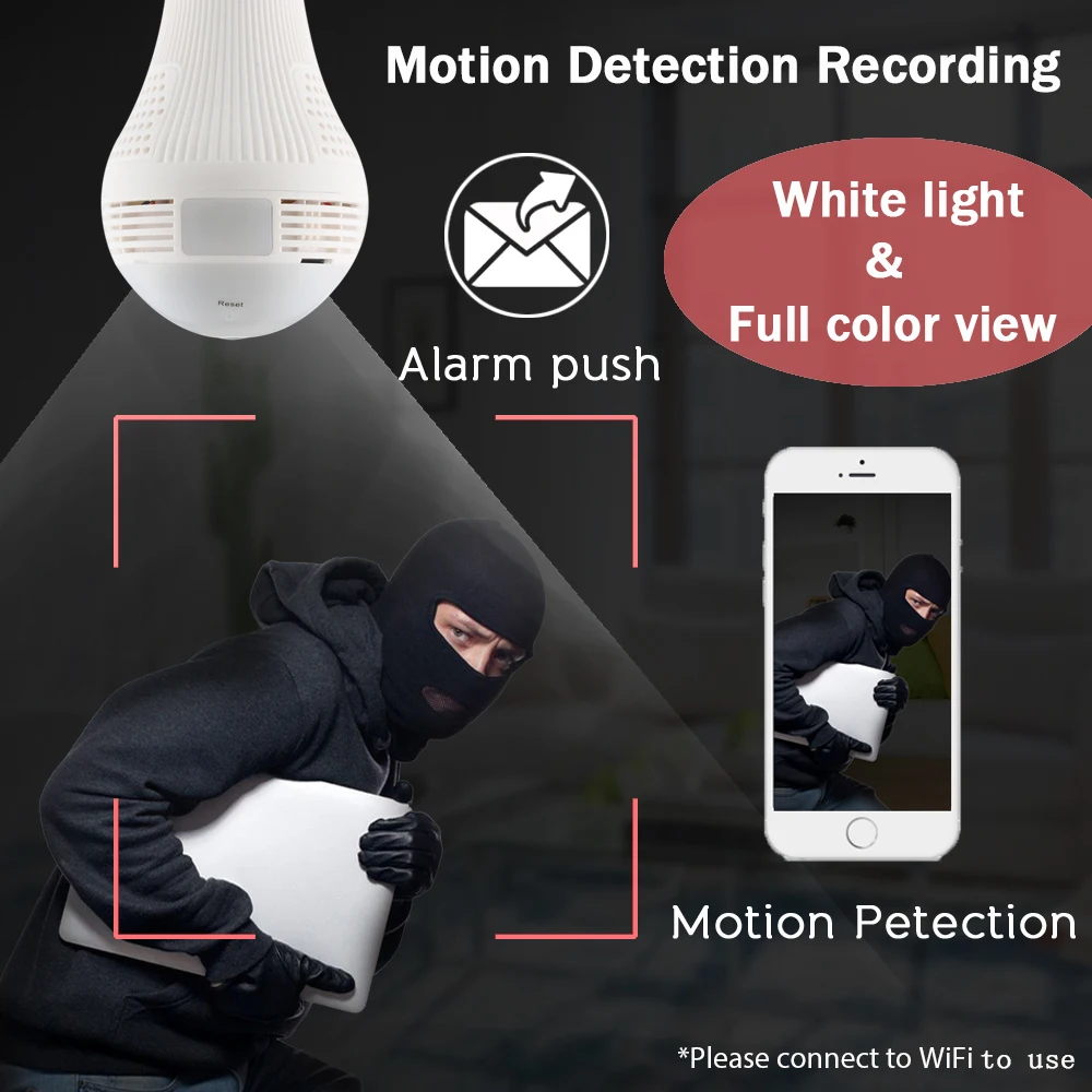 OUERTECH 360 degree Two way audio white light bulb Panoramic 960P Full Color Wireless Smart IP Camera support 128g