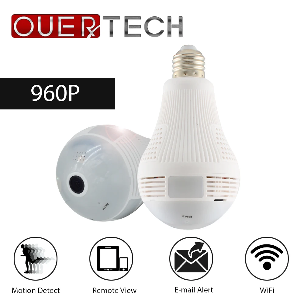 OUERTECH Full view 360 degree Two way audio white light bulb Panoramic 960P Full Color Wireless Smart IP Camera support 128g