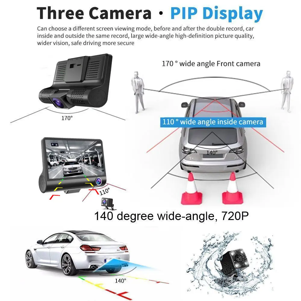 Podofo Car DVR 3 Cameras Lens 4.0 Inch Dash Camera Dual Lens With Rearview Camera Video Recorder Au